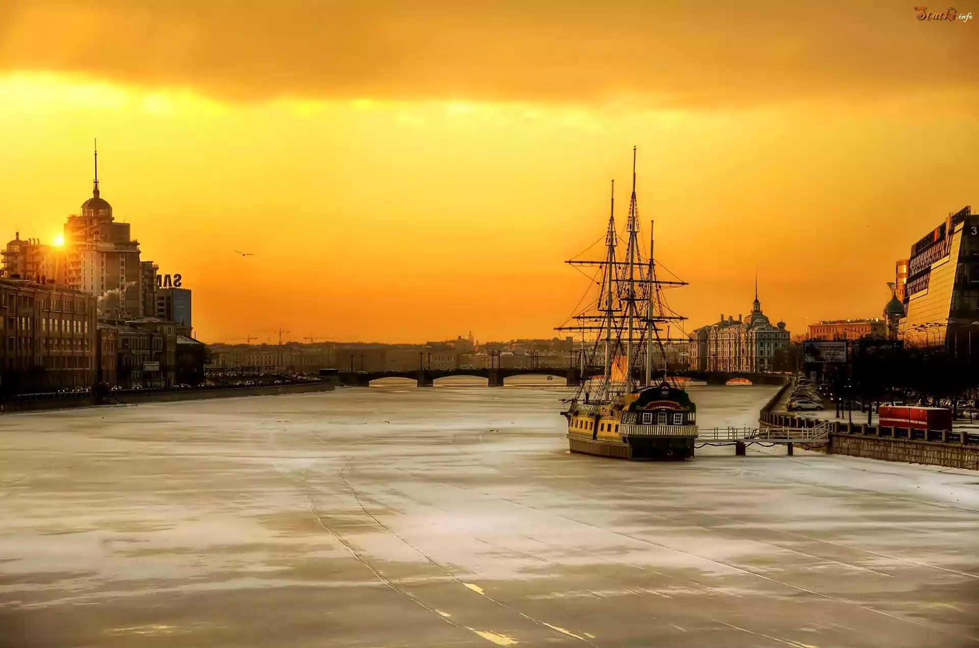 Statek Petersburg, Zachód Słońca, Statek, Miasto