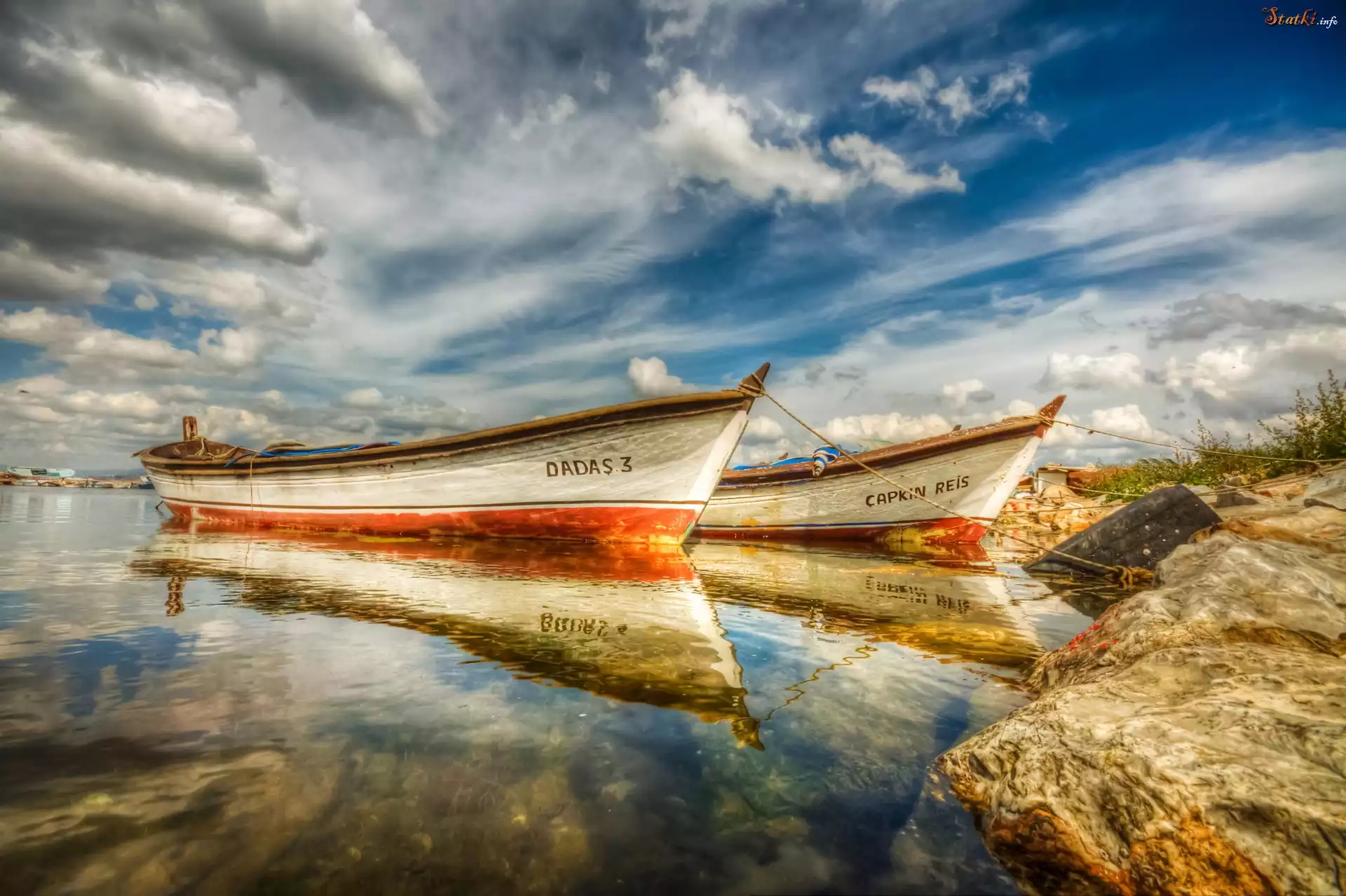 Statek Morze, Plaża, Niebo, Chmury, Dwie, Łodzie, Odbicie