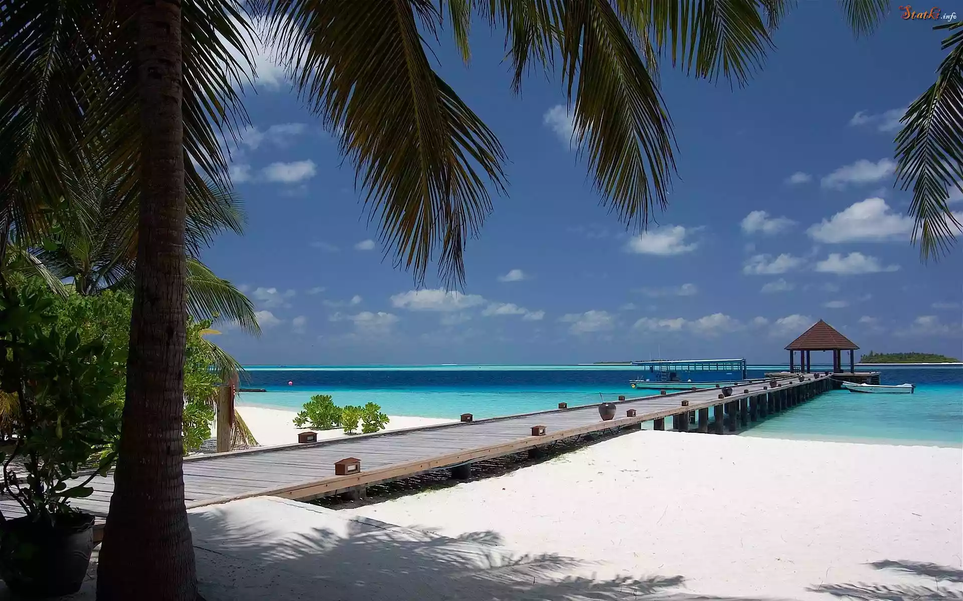 Statek Plaża, Pomost, Morze, Niebo, Łódki