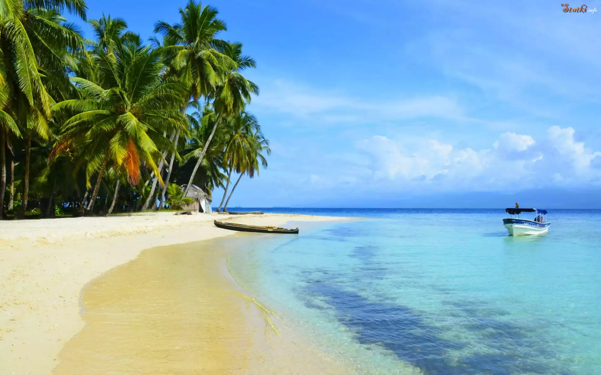 Statek Plaża, Palmy, Łódki, Morze