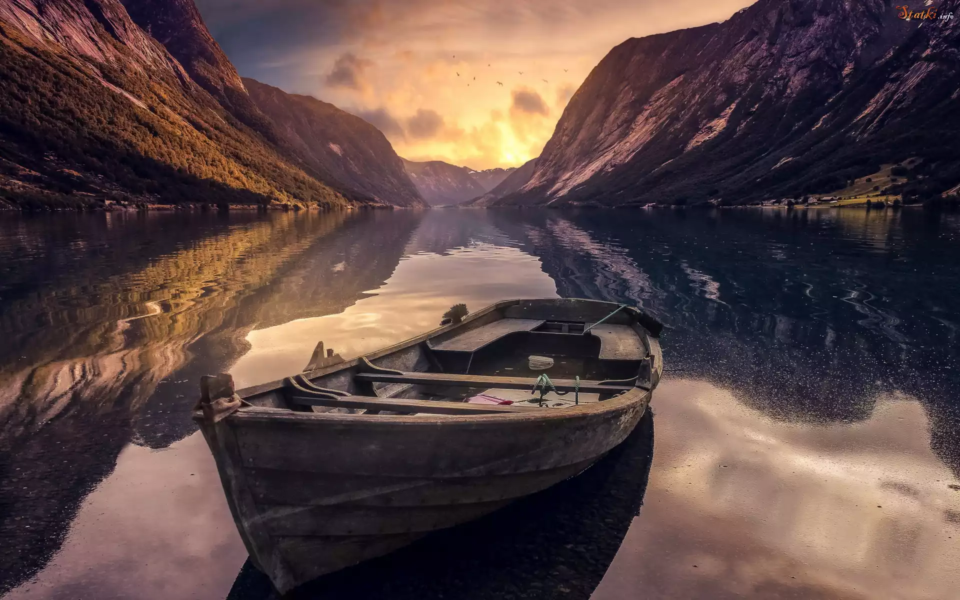 Statek Góry, Jezioro, Łódka, Poranek