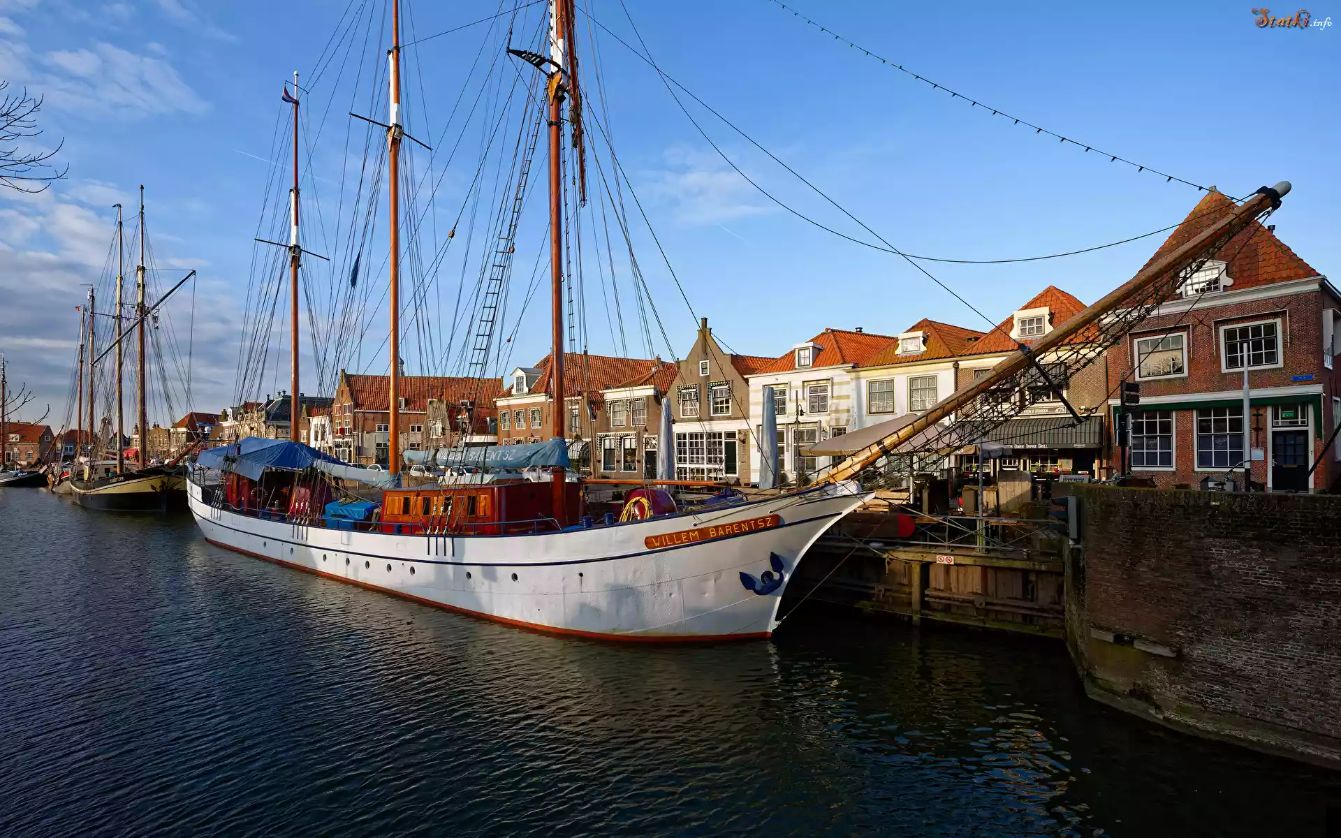 Statek Port, Żaglówki, Domy, Miasto Enkhuizen, Holandia