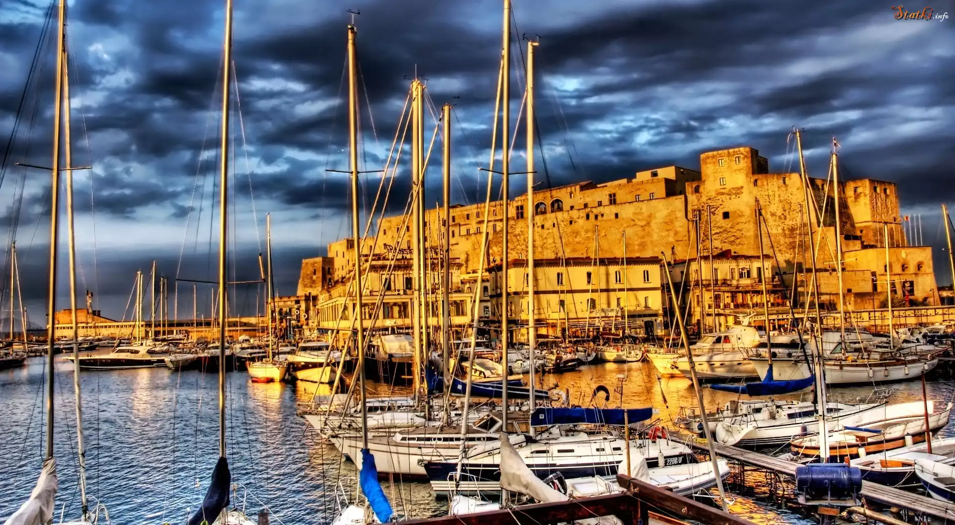 Statek Port, Morski, Jachty, Morze, Chmury