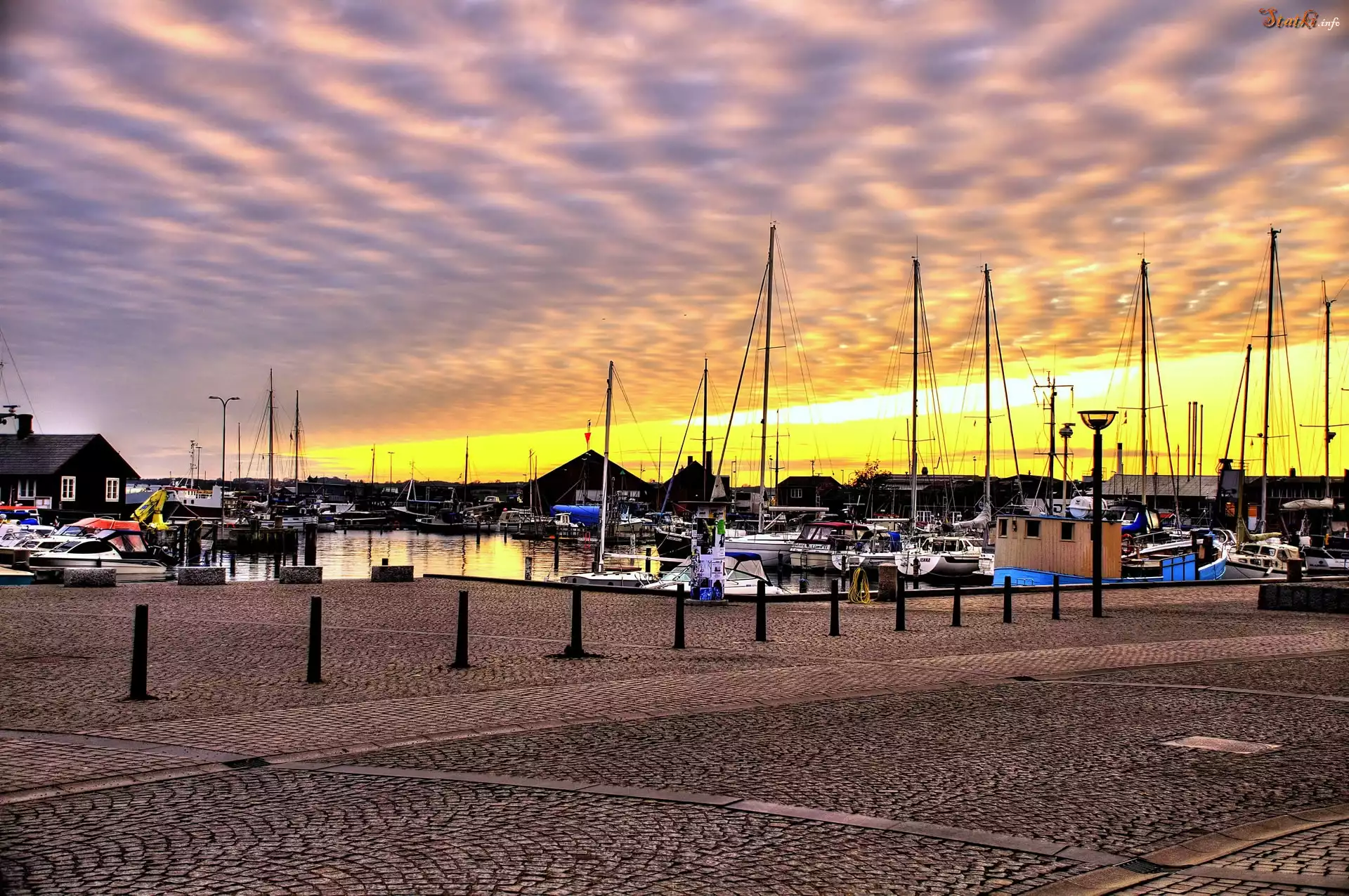 Świt, Chmury, Przystań, Łodzie