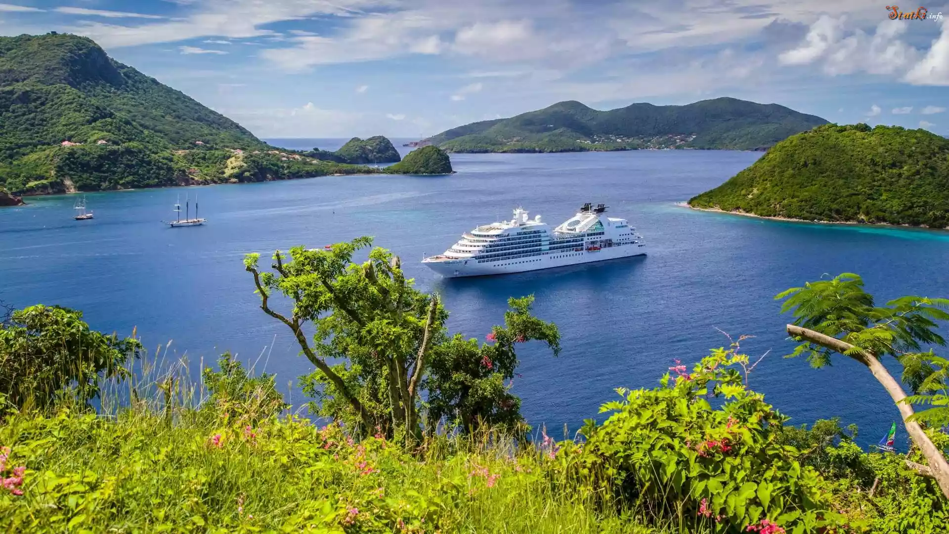 Statek Ameryka środkowa, Wyspa Gwadelupa, Morze Karaibskie, Statek, Góry, Roślinność
