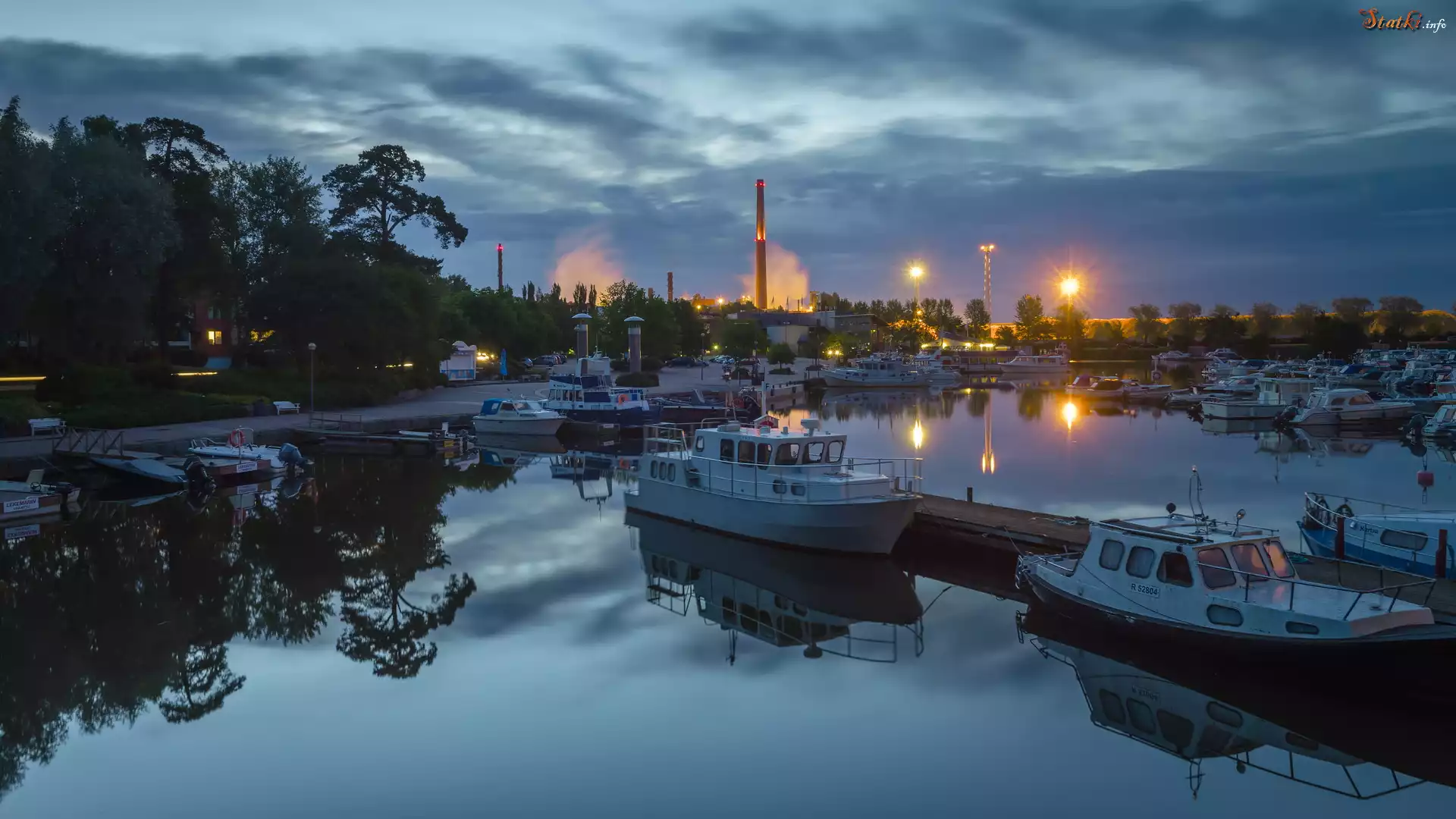 Statek Przystań, Sapokka Harbor, Motorówki, Świt, Światła, Kotka, Finlandia