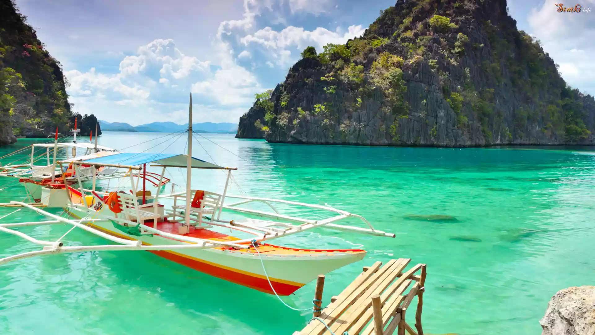 Statek Morze, Skały, Łódka, Laguna, Wyspa Coron, Palawan, Filipiny