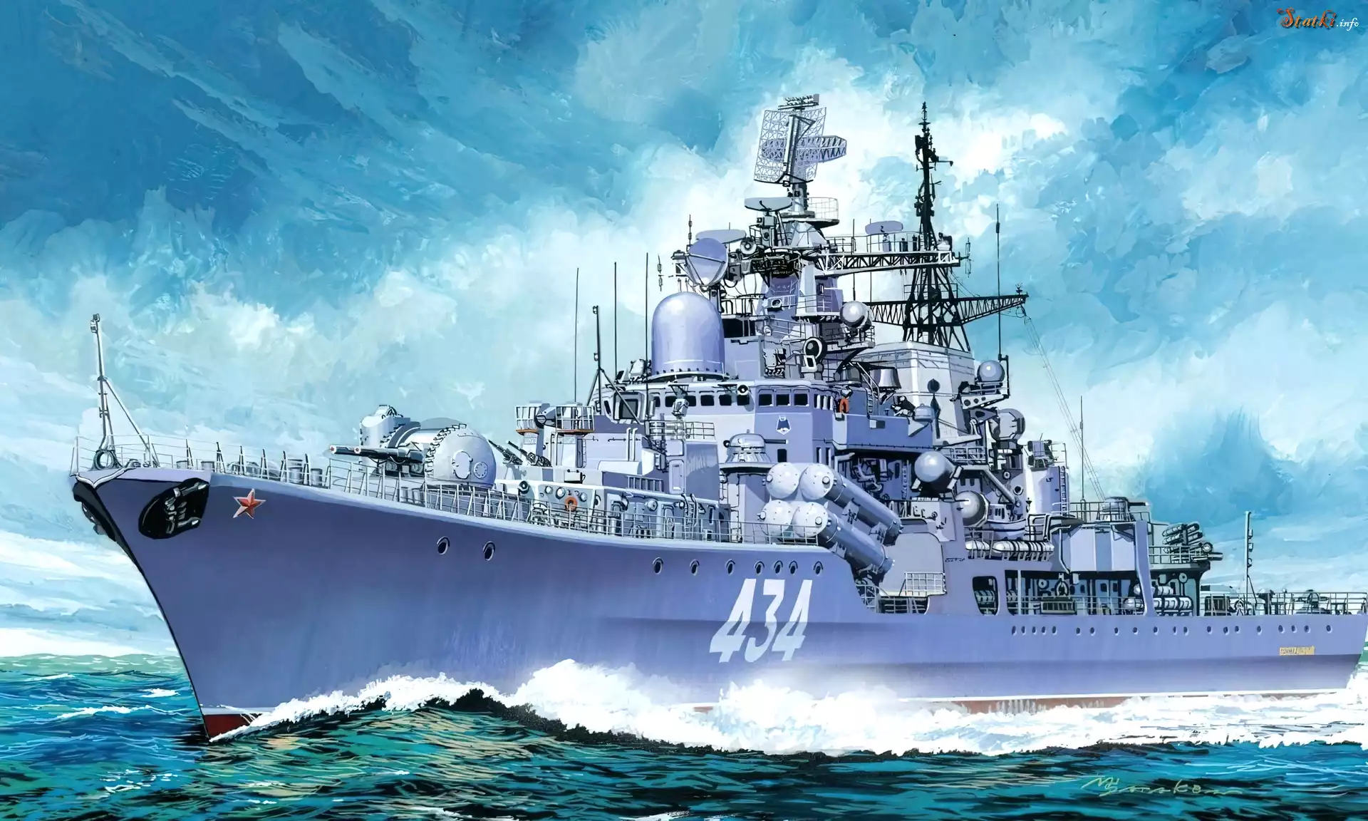 Statek Statek, Wojskowy, Morze, Niebo
