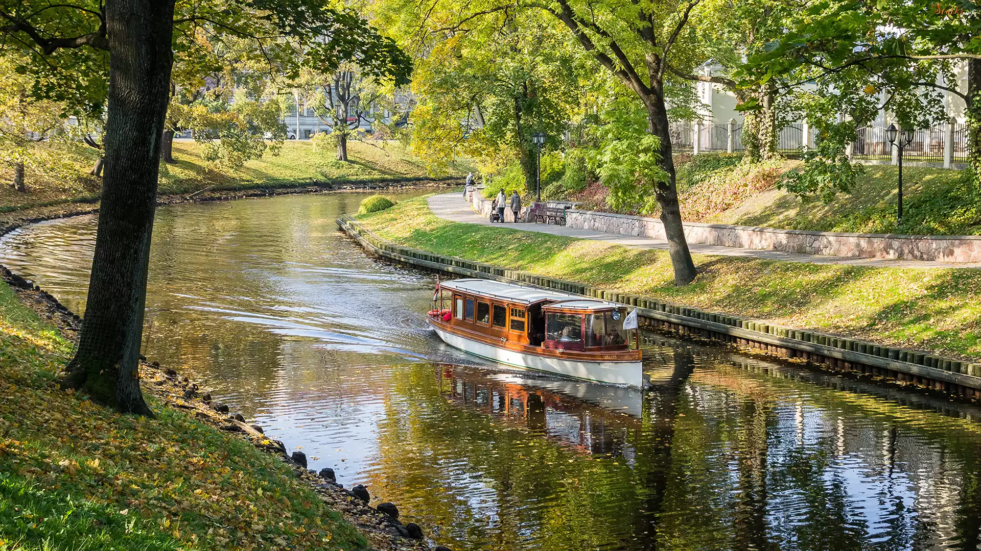 Park, Rzeka, Drzewa, Statek