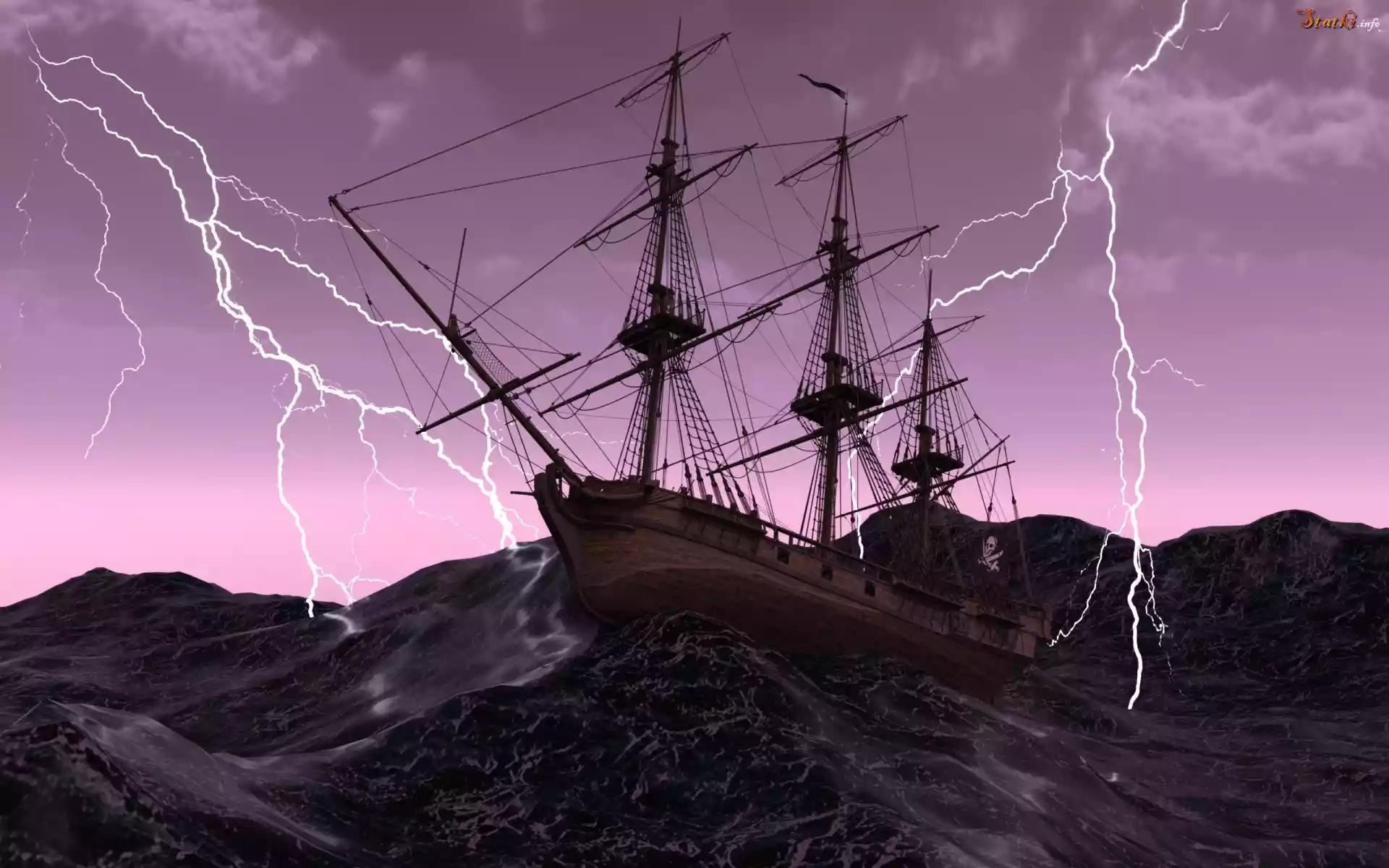 Statek Statek, Żaglowiec, Sztorm, Pioruny, Fale