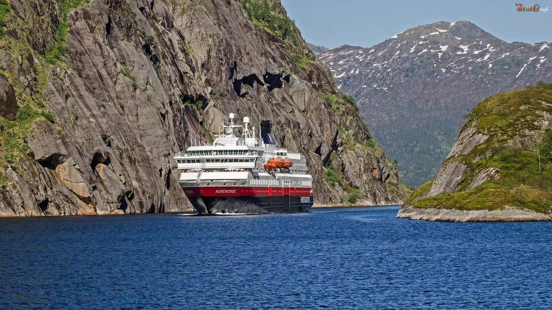 Statek Statek, Morze, Góry, Skały, Norwegia