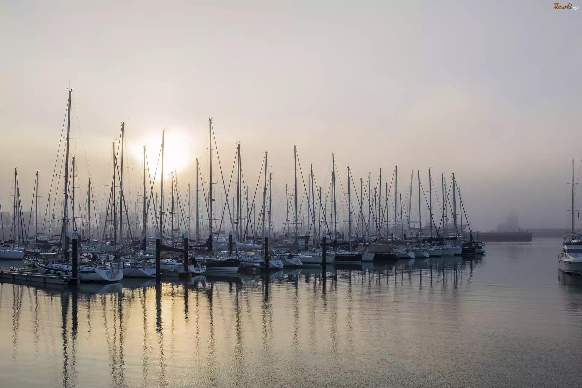 Żaglówki, Świt, Mgła, Wschód słońca