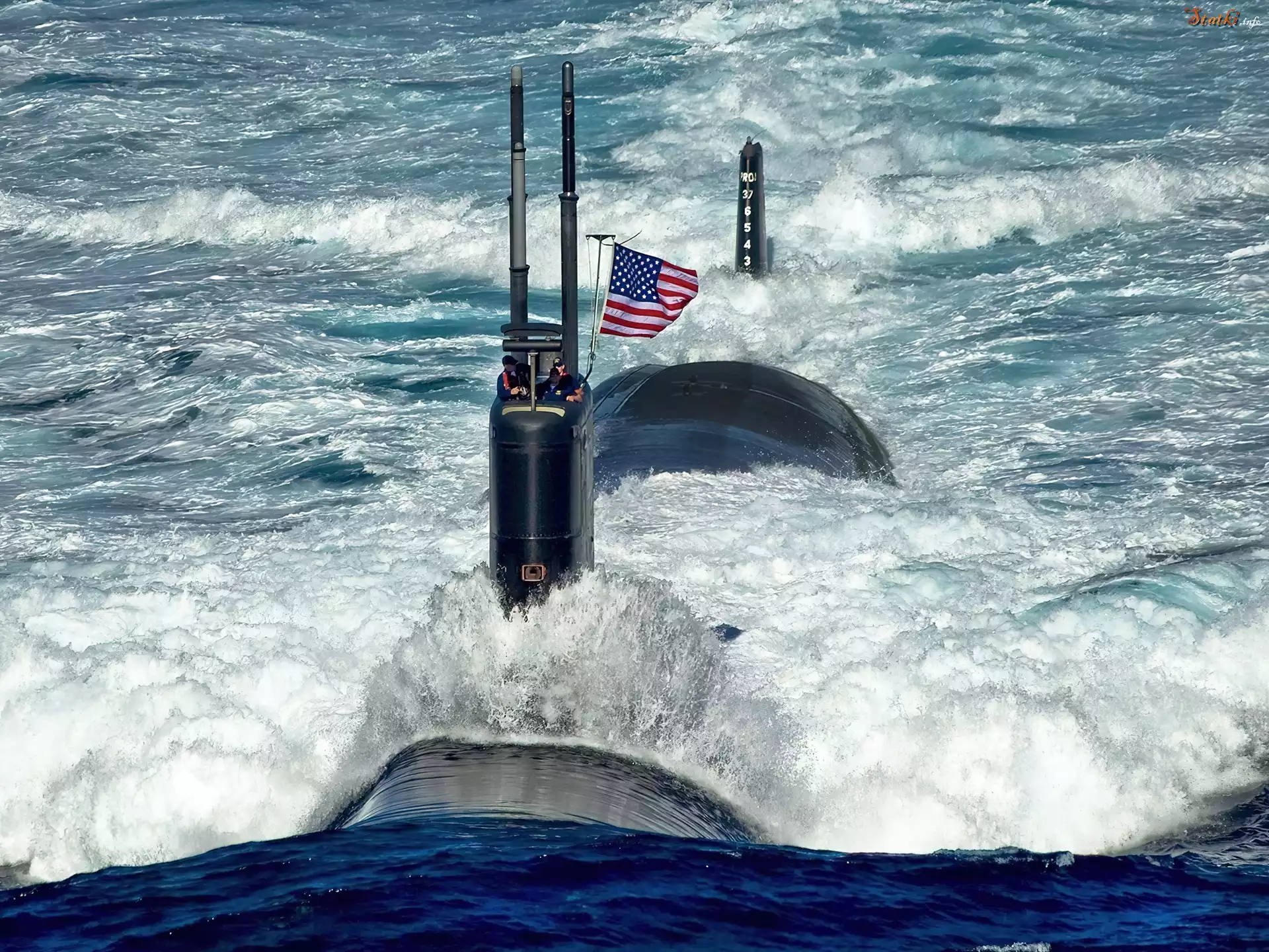 Łódź, Podwodna, Morze, Statki Statek, Podwodny Statek, Podwodny, Morze, Zachód, Słońca USS Turok, Okręt, Podwodny Gra, World of Warships, Okręty podwodne, Ocean, Skały, Cieśnina Zima, Okręt, Podwodny Okręt, Podwodny, Ocean, Wystający, Kiosk Łódź, Podwodna, Slip, Port