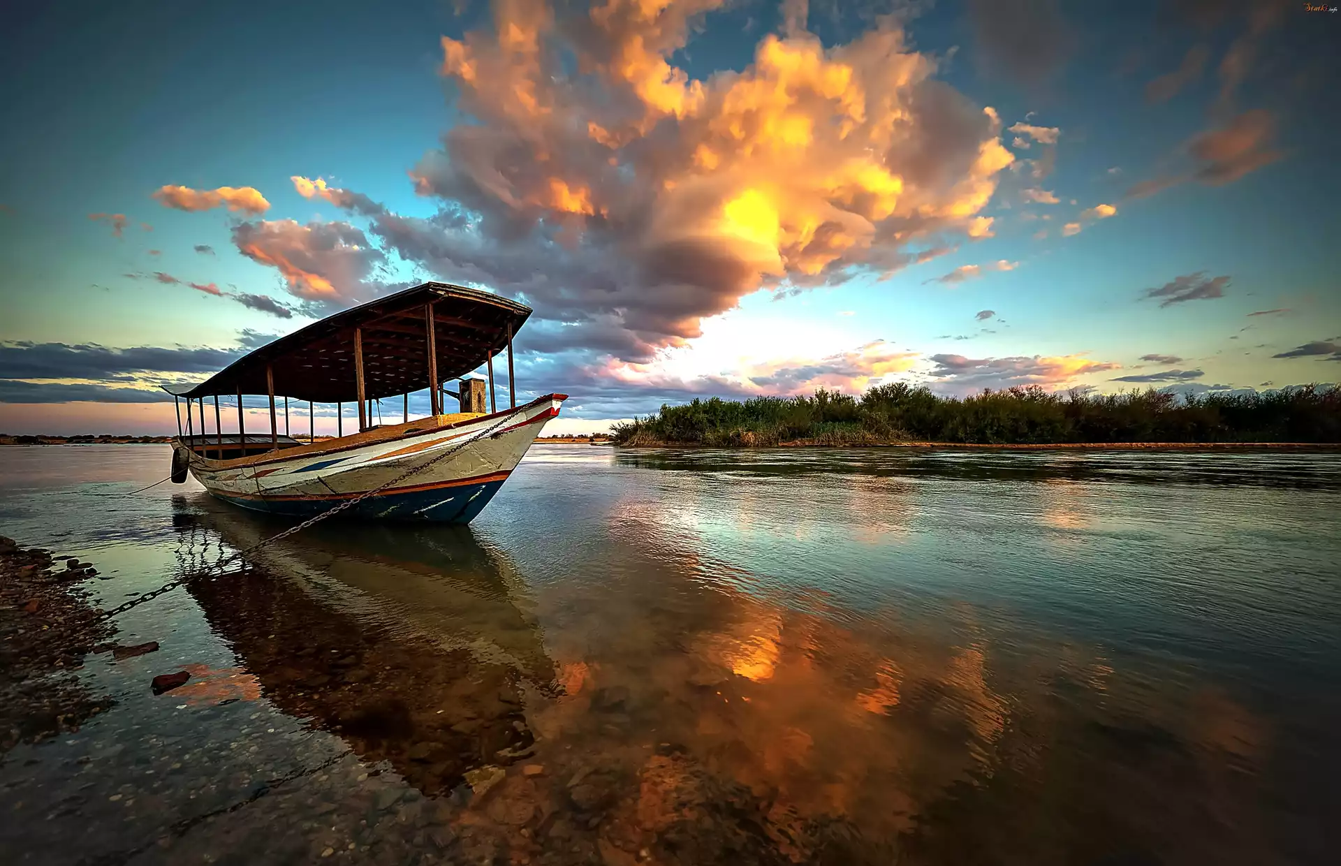 Statek Rzeka, Św.Franciszka, Łódź, Chmury, Przebijające, Światło