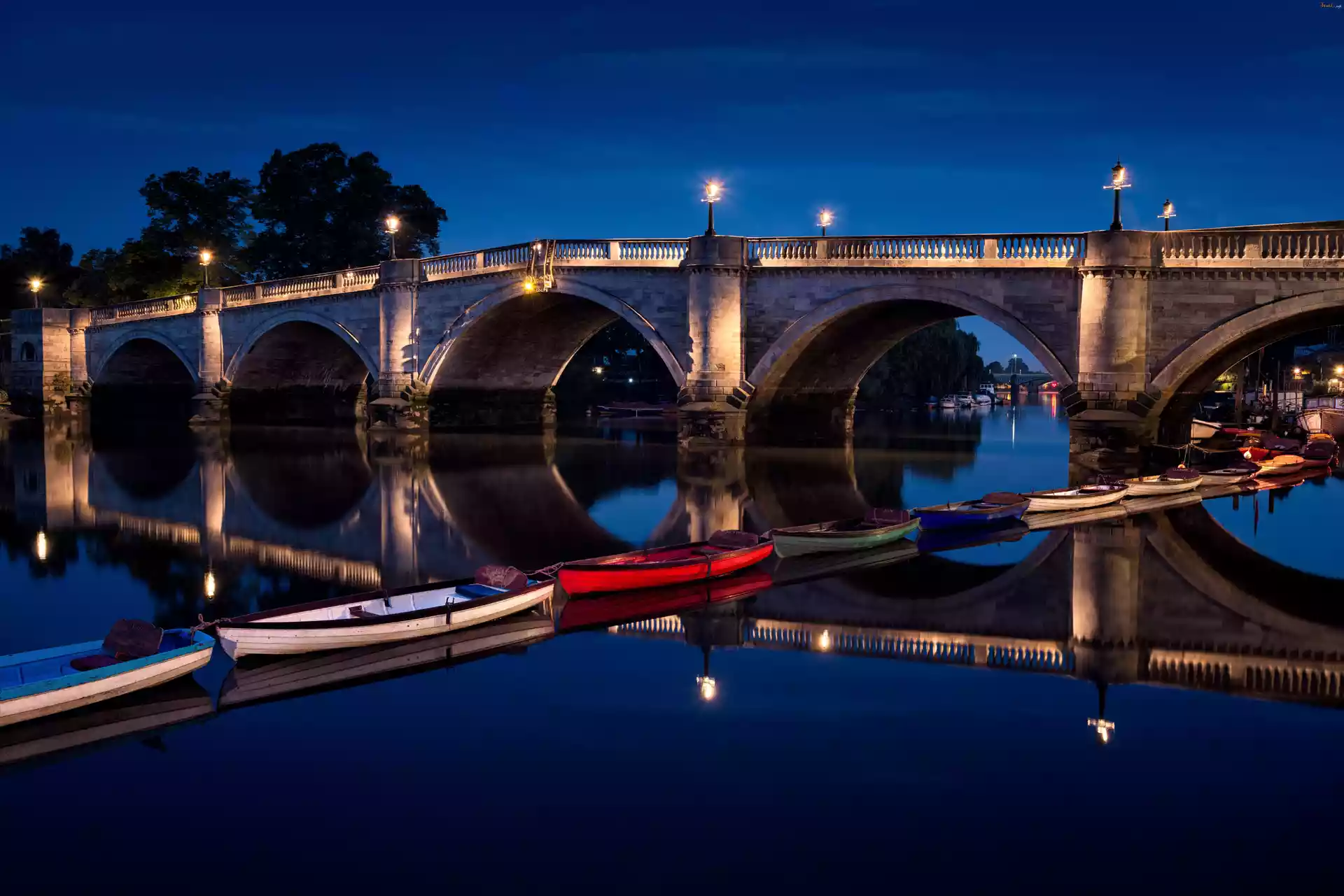Wieczór, Most, Rzeka, Łódki, Wielka Brytania