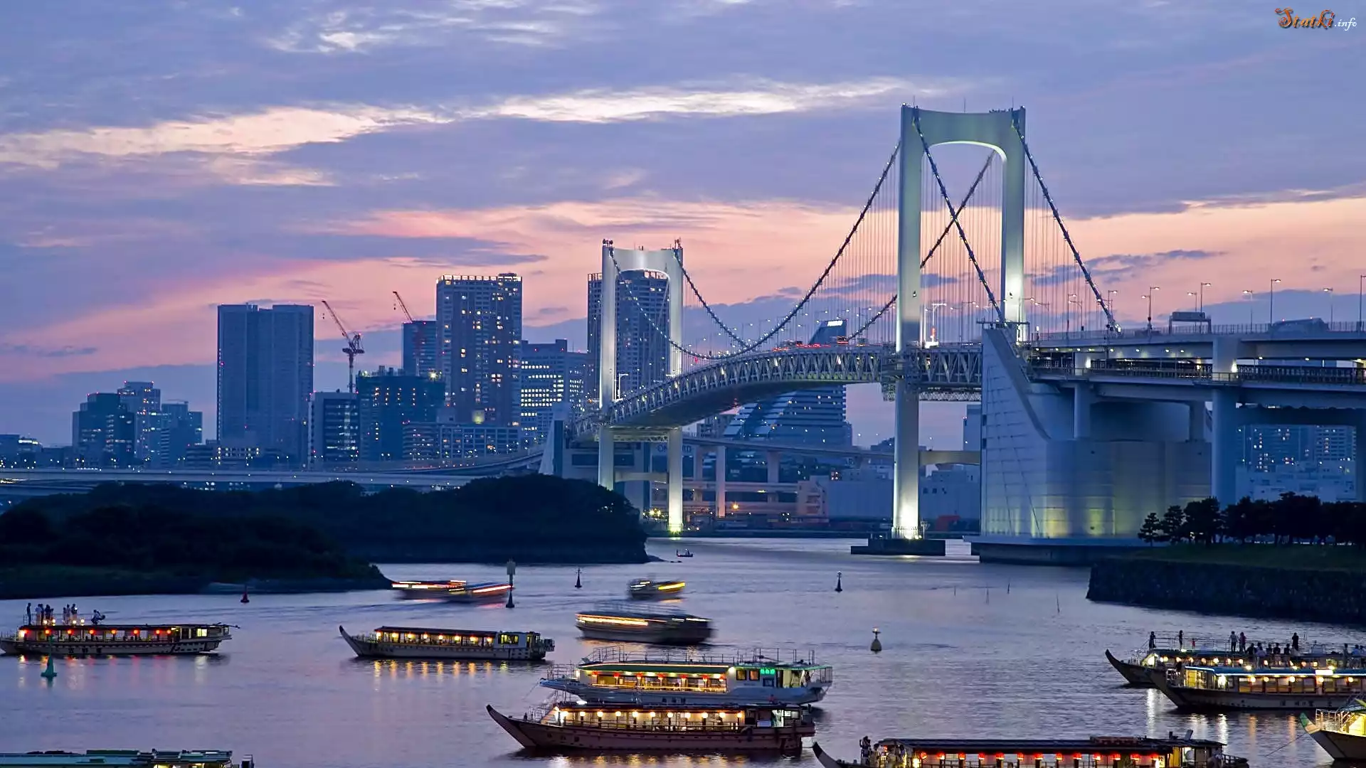 Świt, Panorama, Tokio, Most, Morze, Statki