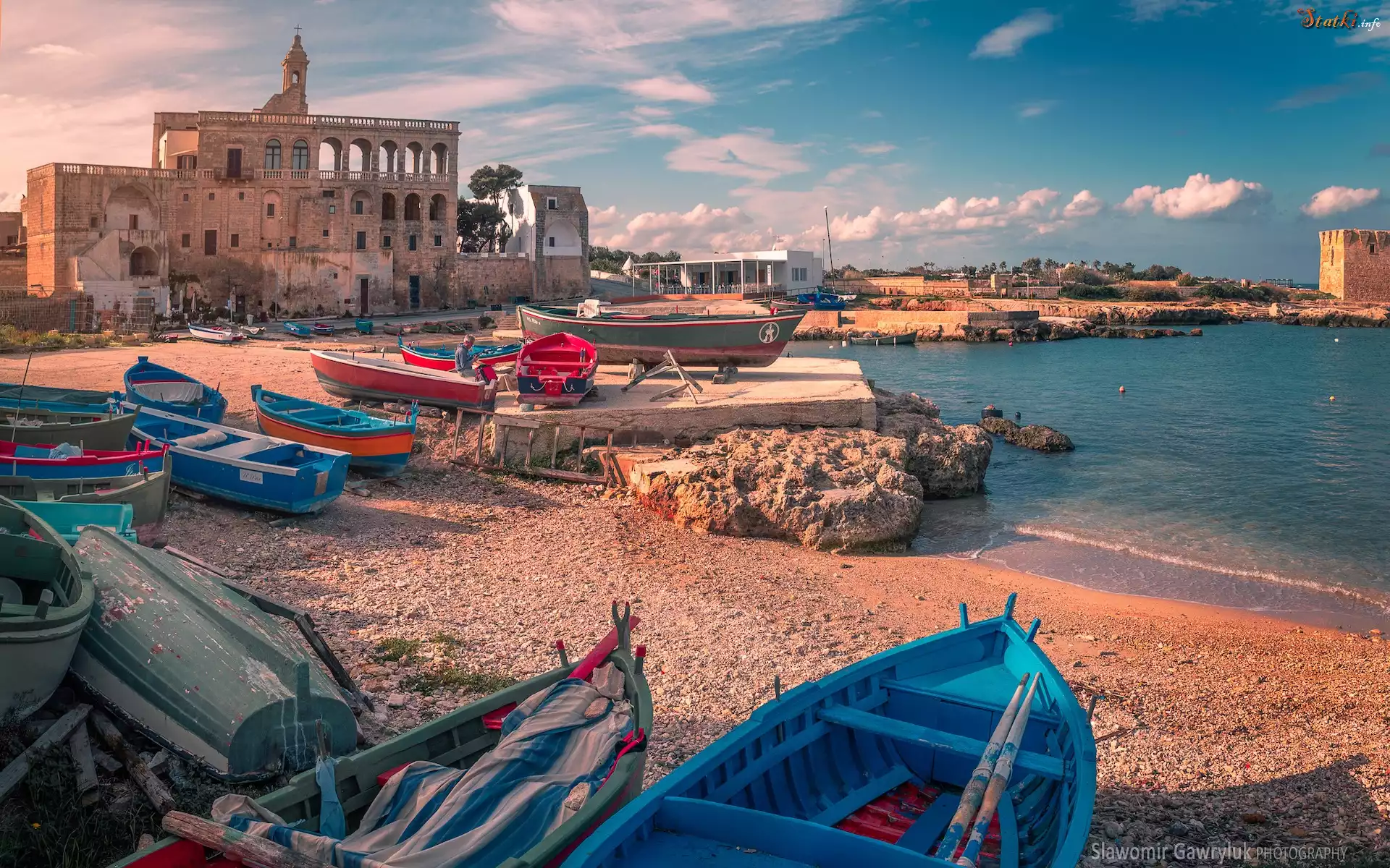 Statek Włochy, Prowincja Bari, Miasteczko, San Vito, Morze, Domy, Łódki