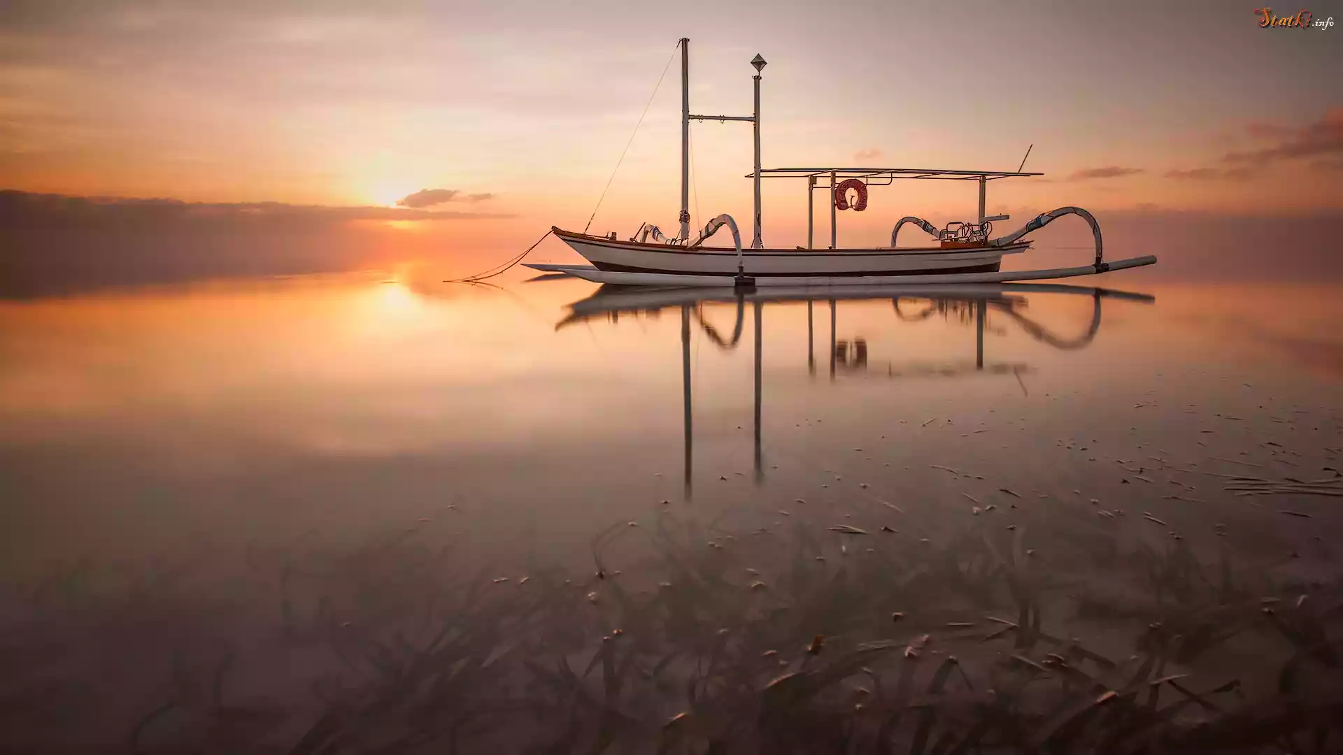 Statek Łódka, Morze, Wschód słońca
