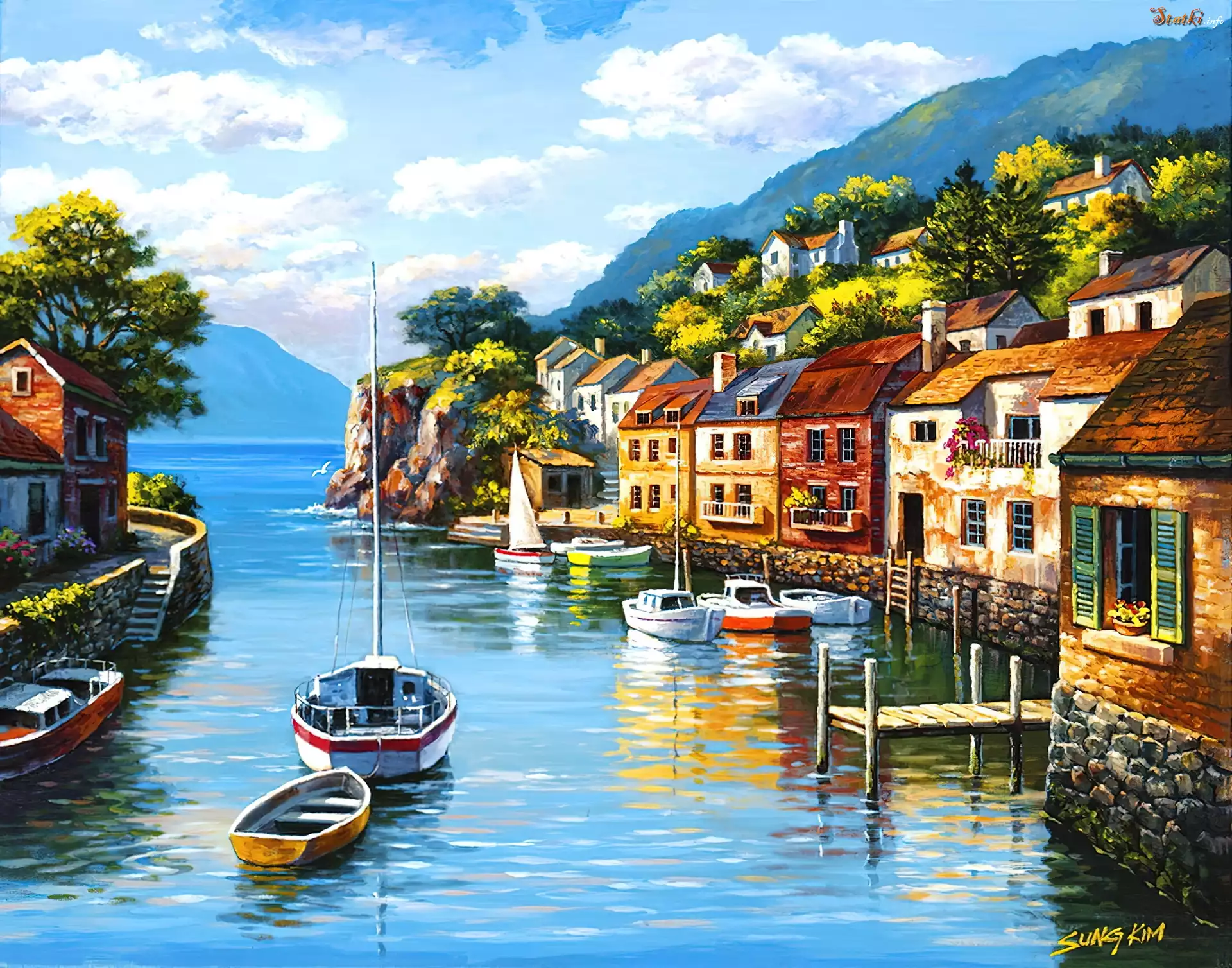 Statek Wybrzeże, Zatoka, Łódki, Domy