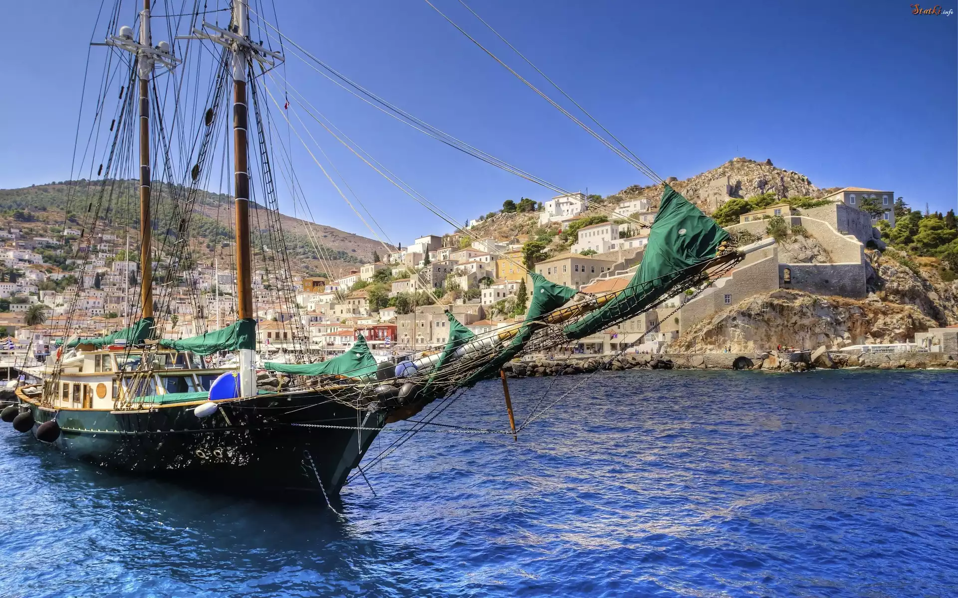 Statek Żaglowiec, Morze, Wyspa, Grecja