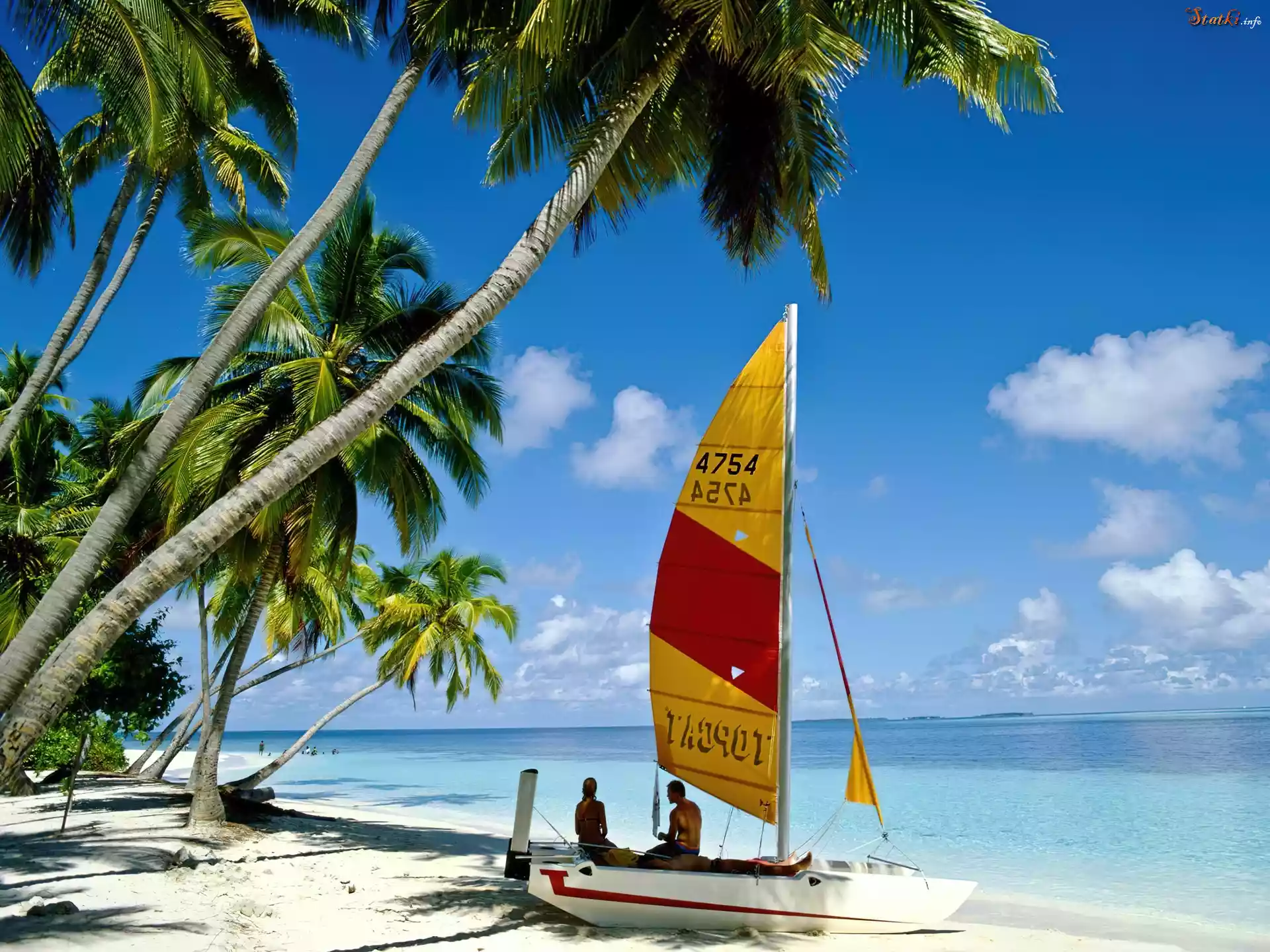 Wyspa, Palmy, Plaża, Żaglówka