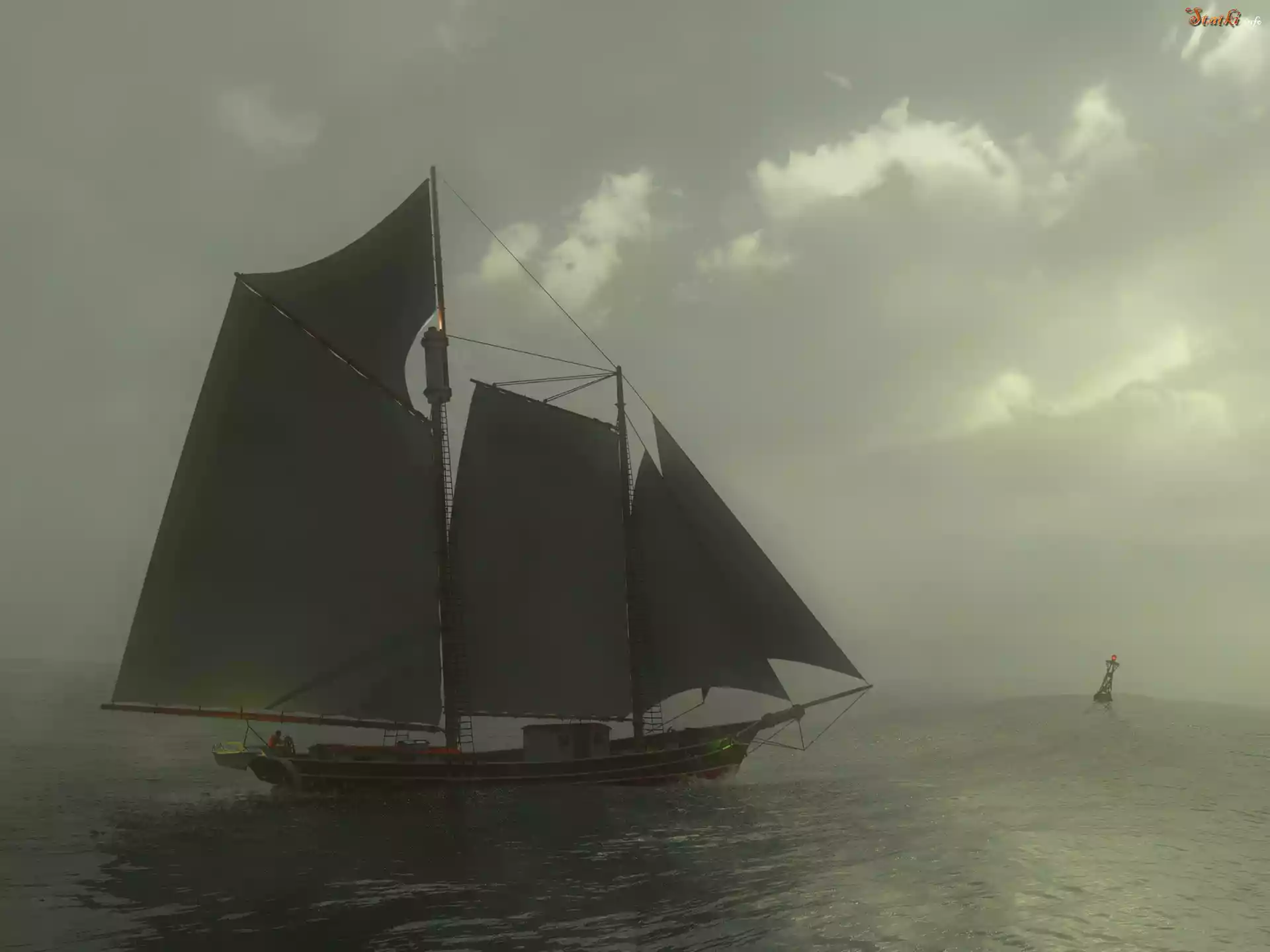 Statek Wzburzone, Morze, Boja, Żaglowiec