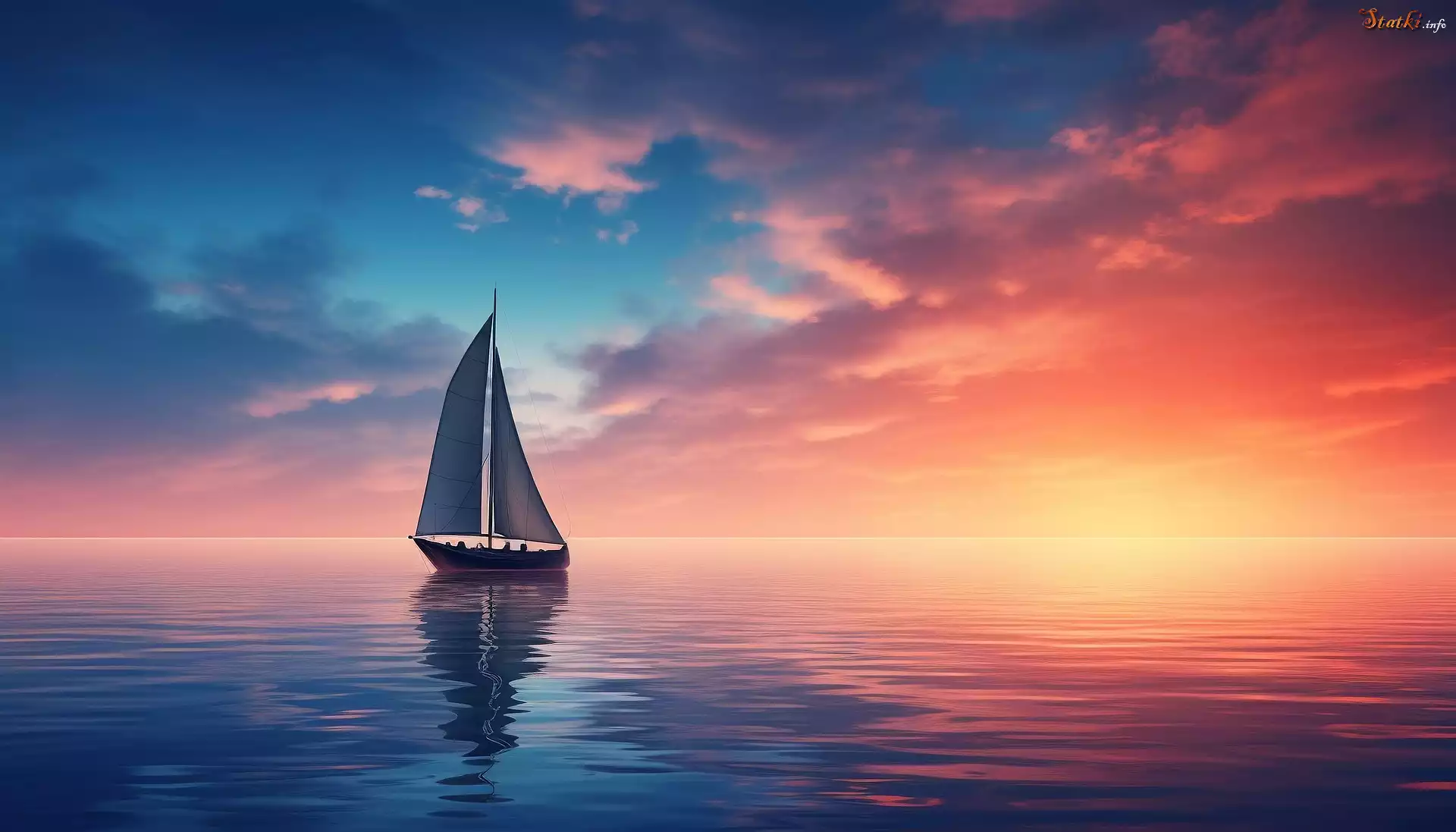 Statek Żaglówka, Morze, Niebo, Zachód słońca, Grafika