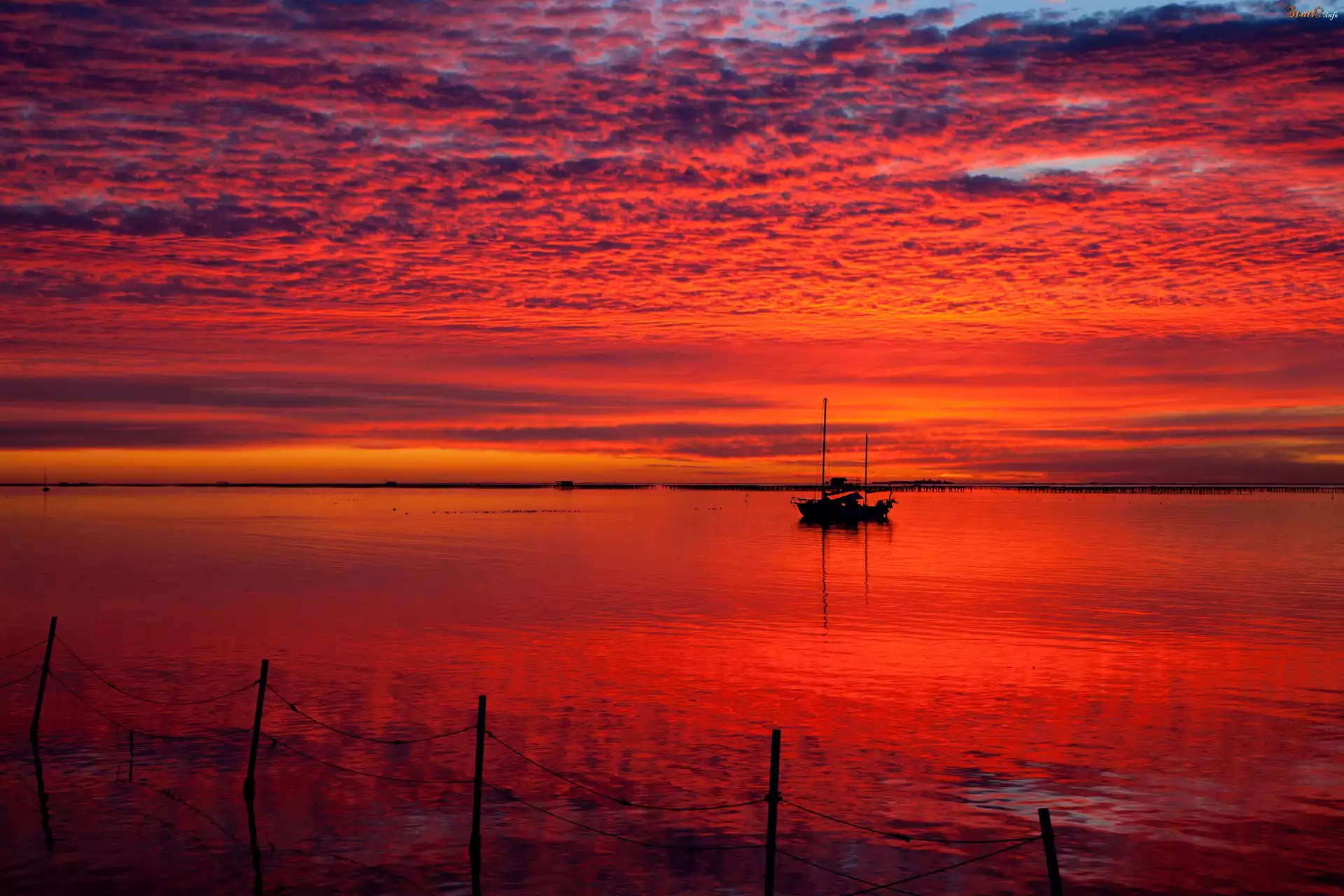 Statek Zachód, Słońca, Jezioro, Łodzie
