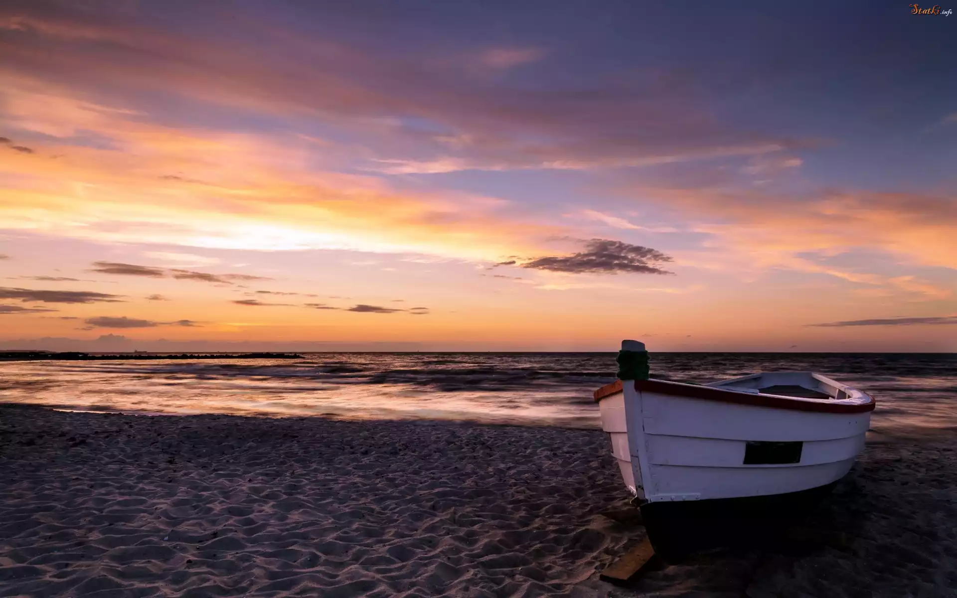 Statek Zachod, Slonca, Morze, Plaza, Lodka