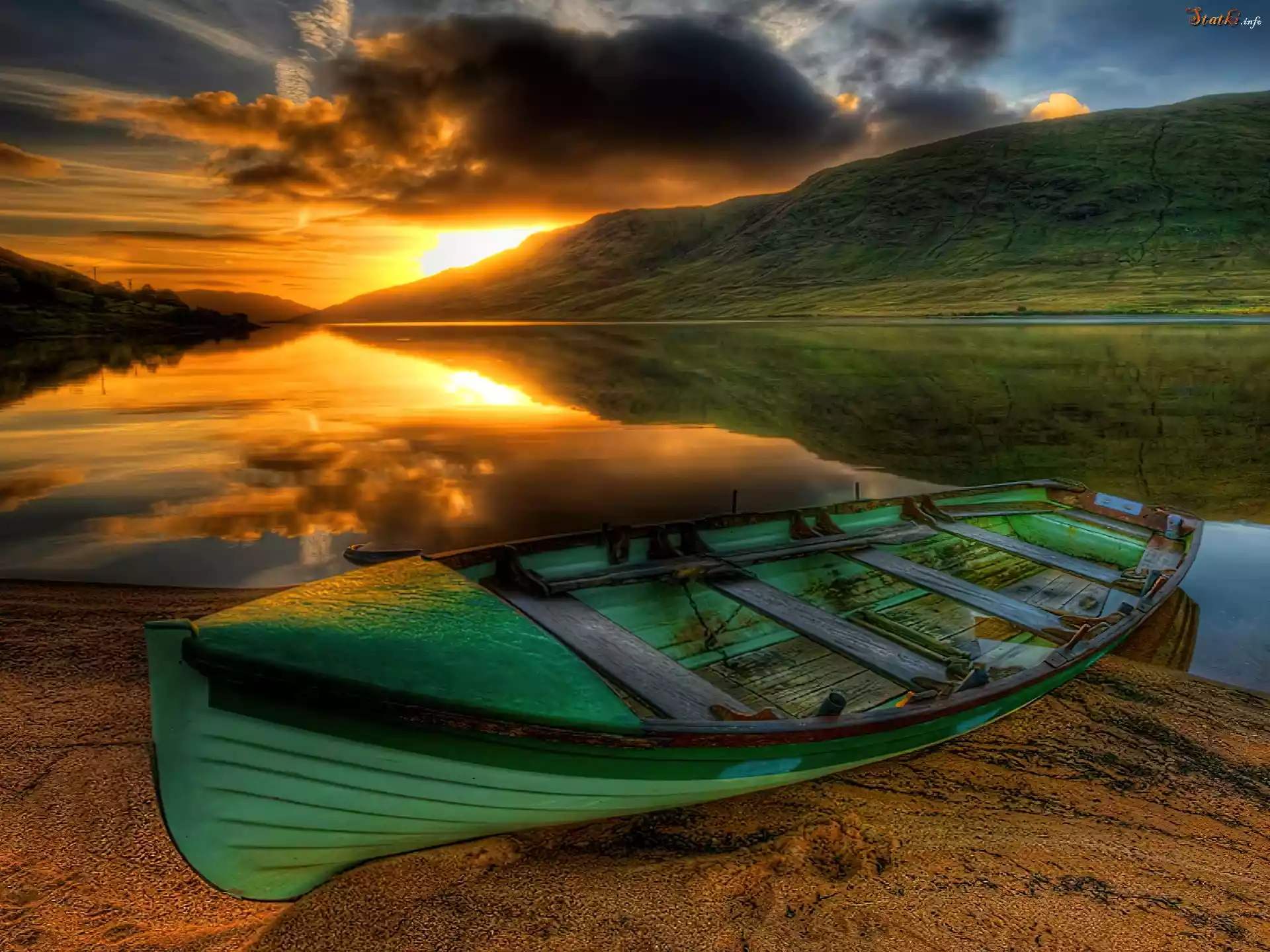 Statek Zachód, Słońca, Rzeka, Łajba