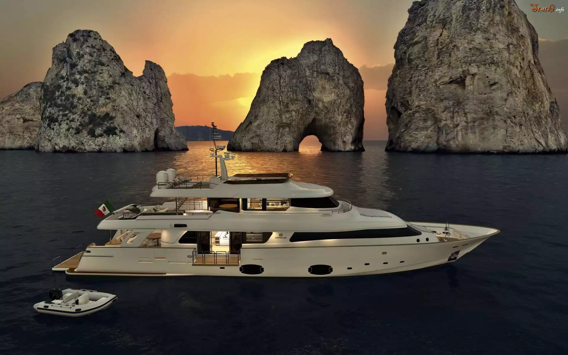 Statek Zachód Słońca, Morze, Skały, Jacht