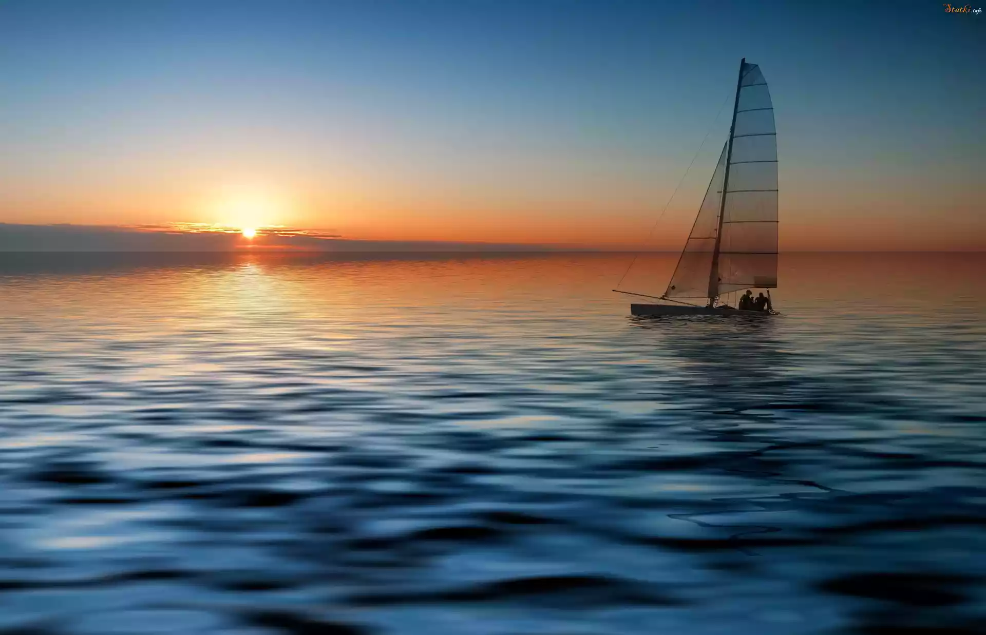 Statek Żaglówka, Morze, Zachodzące, Słońce
