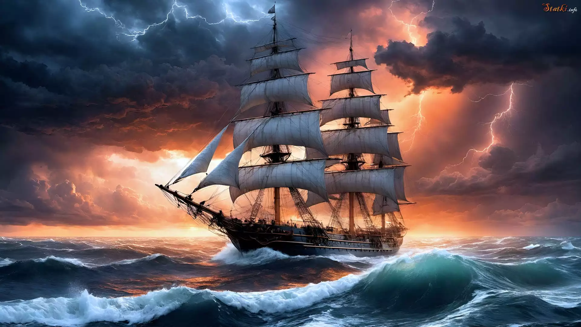 Statek Grafika, Morze, Burza, Żaglowiec