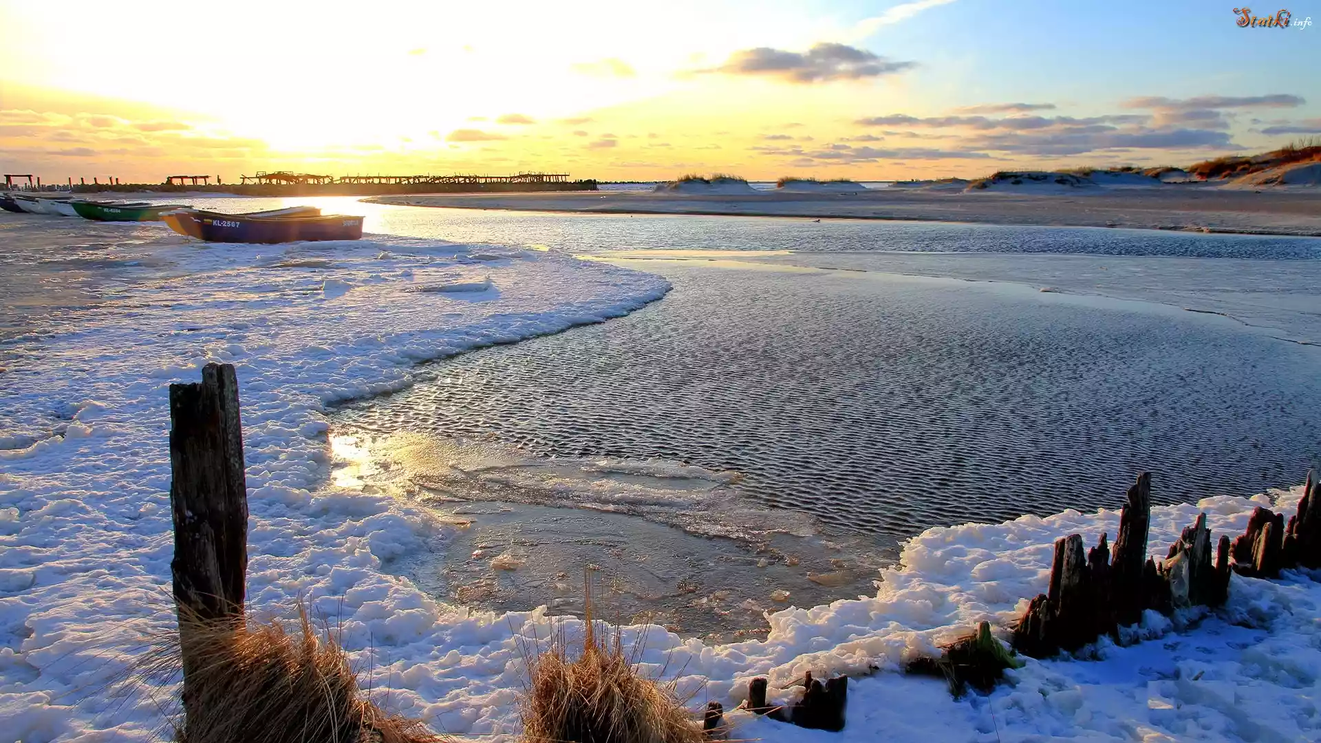Zima, Rzeka, Łodzie, Wschód, Słońca